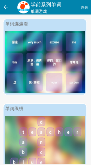 3.提供了单词卡片功能,孩子可以随时随地翻看单词卡片,进行复习和巩固,加深对单词的记忆,非常的实用;