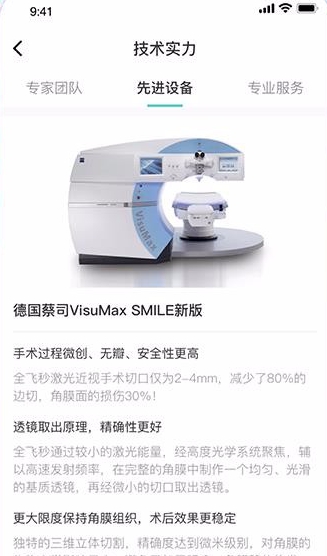 1、了解技术实力,查看先进设备如德国蔡司,了解手术优势。