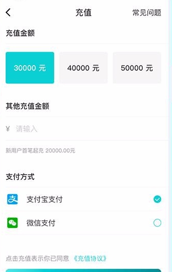 3、进入充值,选择金额和支付方式,完成余额充值。