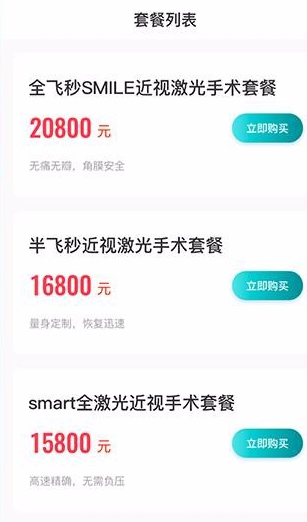 4、查看套餐列表,选择全飞秒、半飞秒等手术套餐,点击立即购买。