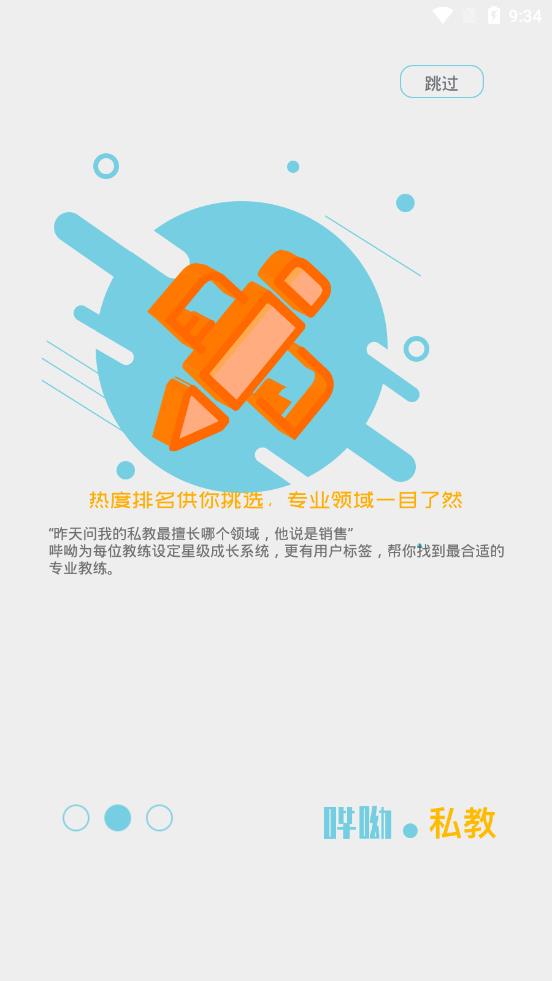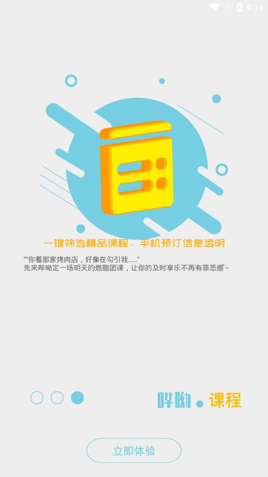 1、点击立即体验,了解课程、私教、场馆等功能介绍,可选择跳过。