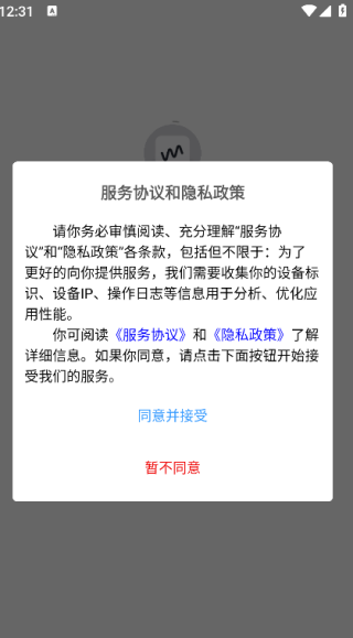 1. 下载并安装APP,点击‘同意并接受’,即可进入主页面;