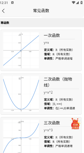 2.每一个函数类型都配有清晰的文字说明,不仅帮助用户理解函数的数学概念,还提供了实际应用中的例子等;