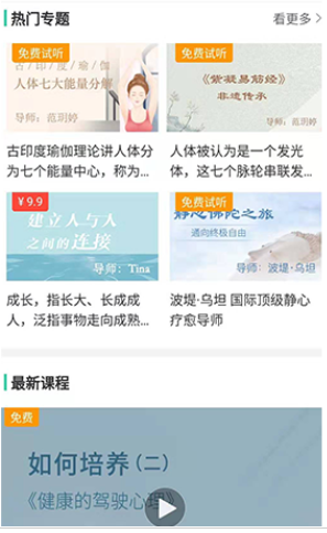 3、访问热门专题页面,既可试听免费课程,也能选购专业心理课程系统学习;