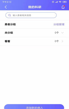 3、在科研管理界面使用智能检索功能,通过分组标签管理患者档案,查看现有分组结构。