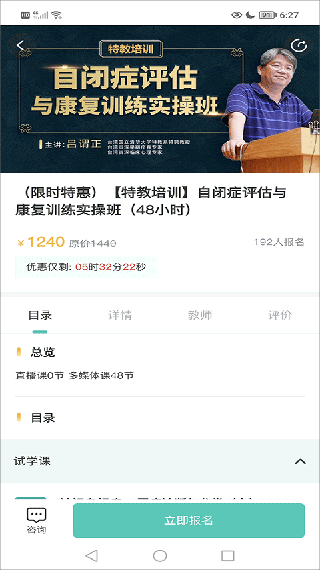 3. 全面浏览课程大纲、讲师资质及学员评价后,选择立即报名或在线咨询。