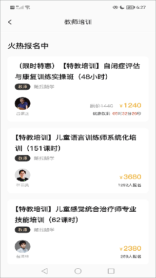 1. 家长可自主选择适合孩子的自闭症干预课程,支持课程详情预览功能;