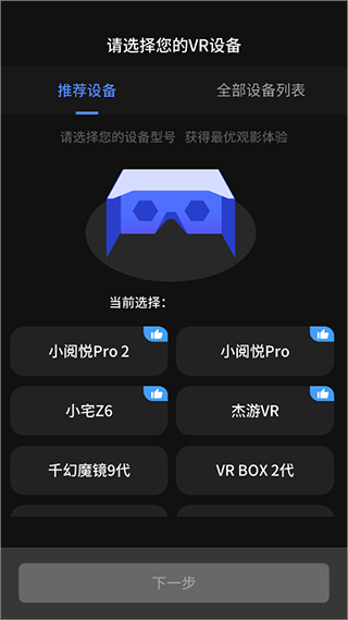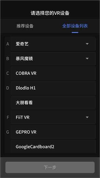 1、用户打开手机版爱奇艺vr应用,即可查看推荐设备信息;