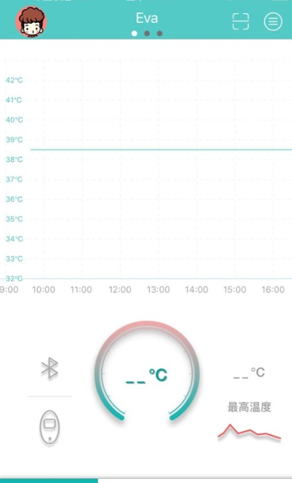 设备关联后实时显示当前体温数据,当日体温趋势清晰可见;