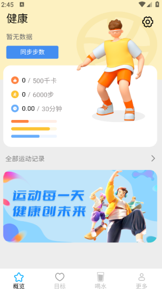 2. 首页集成健康概览面板,实时显示关键指标及运动统计数据;