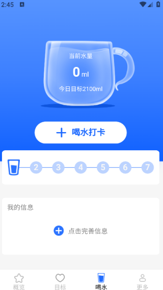 4. 进入「饮水」模块可定制每日饮水量方案,系统将按时推送提醒通知。