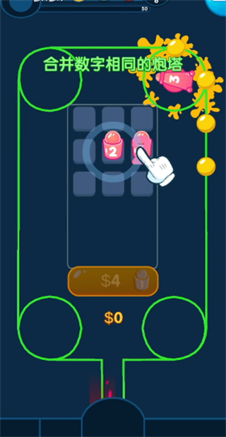 4、【合并】如果炮塔的威力变弱了,就代表着强大了一些,你就需要合成炮塔来获得力量;