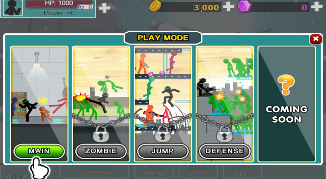 3、在刚开始的时候是有九个火柴人在这里一起战斗的,还有两种模式供玩家去选择;