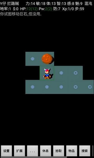 3、尝试移动巨石无果后,可先查看周围环境,利用 “搜索” 功能寻找其他可互动的元素或隐藏路径。