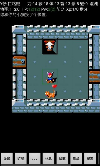 4、和小猫换位置后,观察房间内的箱子等物品,可先靠近箱子,使用 “拾取” 功能查看是否有可用道具。