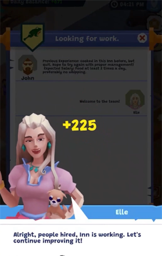 1、玩家需要吸引更多的人到你的酒店,这样你才能赚更多的钱将旅馆发展起来;