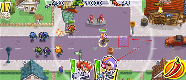 2.使用火焰喷射器的这个角色,玩家在使用糖果对其进行升级时,她所有的技能都可以增加她的移动速度,并且还可以使她的武器伤害增加,这样的话在前进的时候玩家们就可以更加轻松的对僵尸们造成更多的伤害了,消灭路障的奖励也会增加。