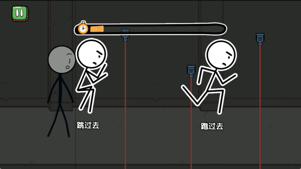 3、通过改变姿势来穿越激光,面对各种激光要找到安全的穿越路线,让火柴人能顺利到达目的地。