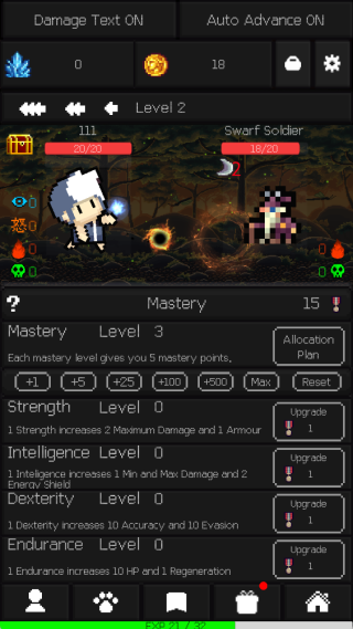 1、角色会自动展开战斗,每次战斗均可获取经验值与战利品,可自由培育自己的角色。