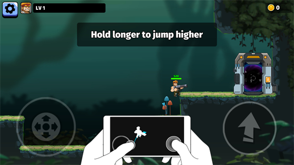 4、遇到高台障碍时,长按跳跃键进行蓄力,找准落点平稳落地,快速靠近传送门以解锁下一段冒险路程。