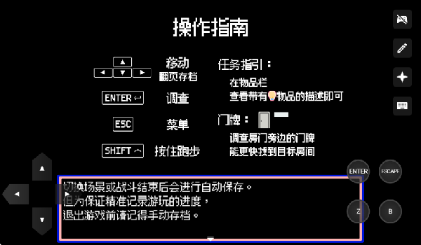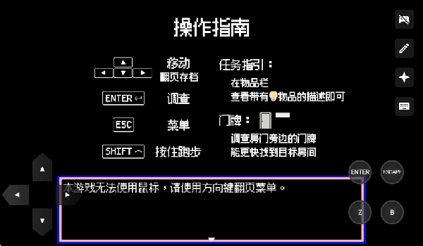 2、建议先行查看操作说明:方向键控制移动,enter键确认选择,其他功能键位均有明确提示。