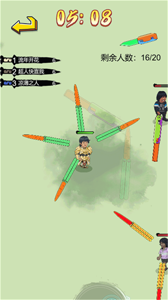 在飞镖忍者大师游戏里,你的手部周围会环绕诸多飞刀,于地图中能够持续前行。敌人同样有众多飞刀环绕,一旦相遇,便会较量谁的飞刀数量更多。当击落敌人所有飞刀后,即可对其本体发起攻击,击败其本体,他所有的飞刀就都归你了,借此不断强化自身。