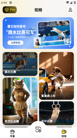 4. 点击左下角的‘特效’,即可看到各类有趣的萌宠视频。