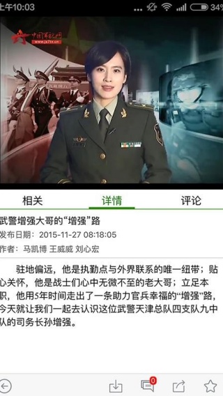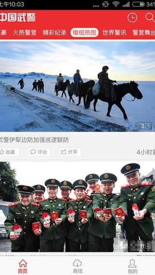 3、可以在线发布动态,发布喜欢的武警部队动态;