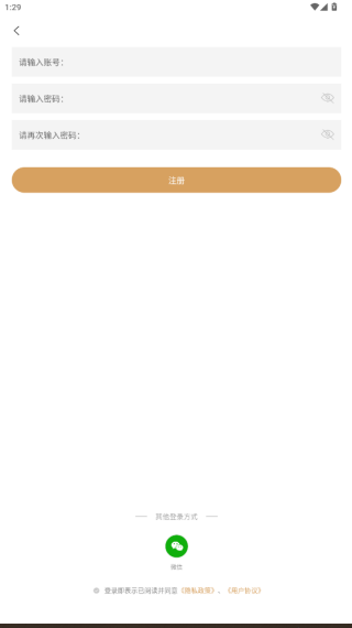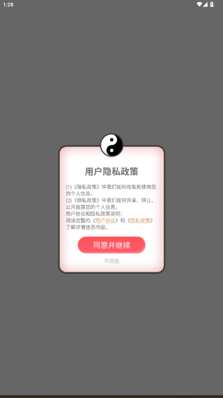 1、下载安装APP后打开软件,提示同意与否,点击同意进入注册界面;