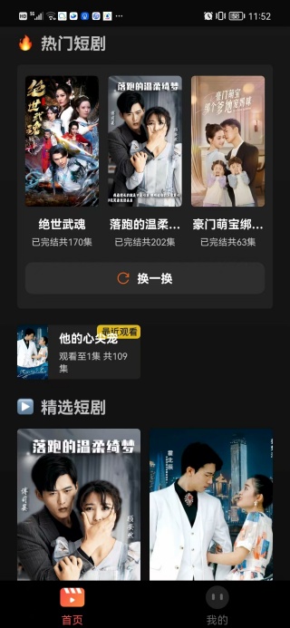 1、在首页中提供了热门短剧,还可以了解各种精选短剧内容;