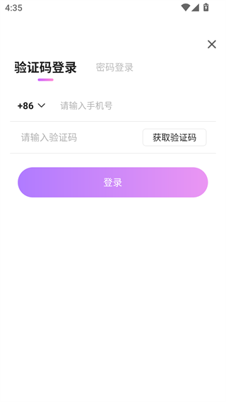 3、输入手机号,获取验证码,完成登录进入到首页;