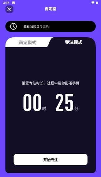 2. 点击【自习室】,即可设置学习计时,在计时期间娱乐功能会被锁定,以此帮助使用者提高专注度。