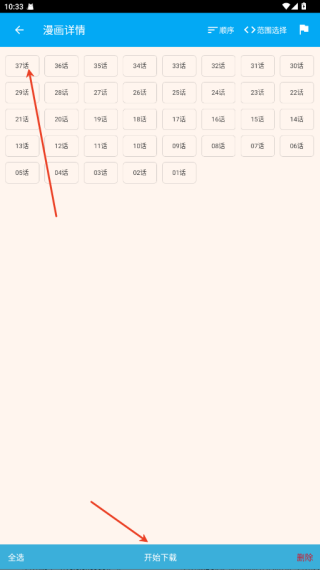 3、选择集数点击开始下载;