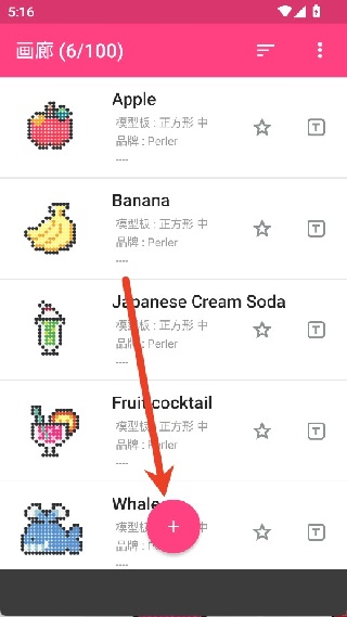 2. 拼豆列表会显示颜色、数量与项目编号,方便整理。
