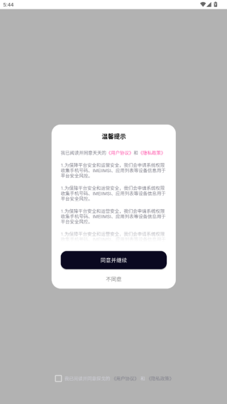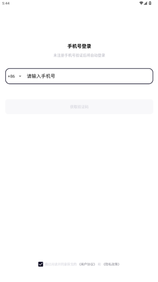 1、下载安装APP后打开软件,提示同意与否,点击同意进入注册界面;