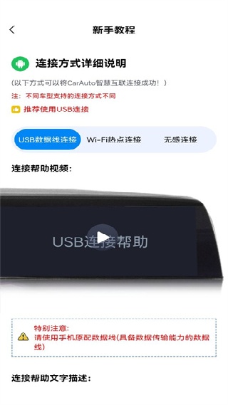 1. 首先打开CarAuto车机端软件,使用前需将软件与自己的车连接。若不知如何连接,先点击连接帮助。