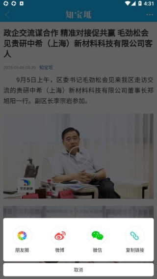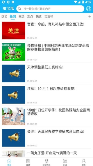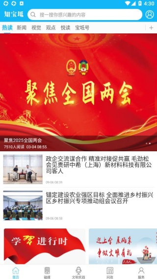 1、下载知宝坻,立即进入到界面上查阅新闻;