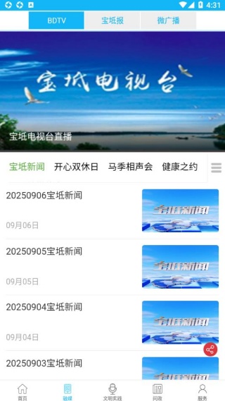 知宝坻是一款超实用的新闻阅读互动工具,能让您轻松知晓当地文化、建设与发展情况。您可自由挑选感兴趣的资讯新闻阅读,还能查到新闻直播方式及行程安排,随时设置订阅或提醒,依提醒掌握各类资讯。这里还有天气、快递、公交查询及政务服务等,政务与生活融合,让生活更便利。此外,能看电视节目时间表,支持报纸阅读,打破传统读报形式,轻松获取新闻。