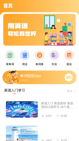4、词汇学习界面简洁,有单词语音发音,方便孩子学习到纯正的英语发音,记忆更深刻。
