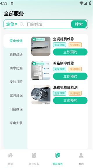 4. 点击页面下方的‘到家服务’,即可根据页面右侧的分类进行快速查找。