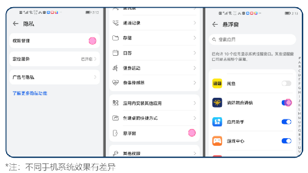 4. 开启悬浮窗,在权限管理中允许显示关键告警信息。