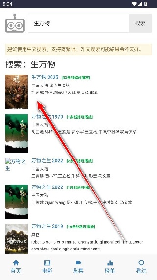 1、先开启ikanbot爱看机器人,于首页搜索框输入关键字。