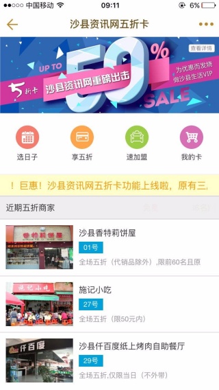 3、沙县资讯网五折卡,是可以获取到更多的五折信息内容,查看方便。