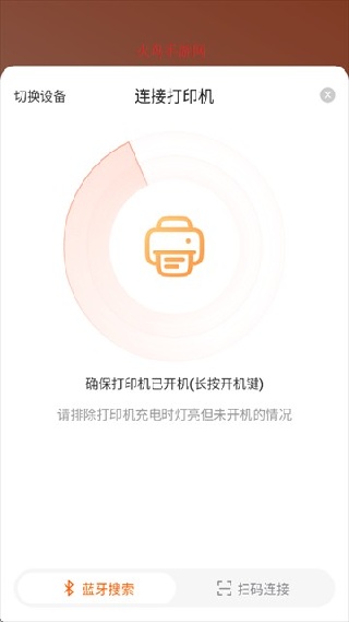 2. app打开后,先开启打印机电源,同时打开手机蓝牙,点击连接打印机以搜索蓝牙设备的爱印打印机app下载方法。