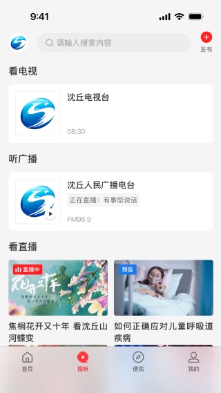 云上沈丘app是河南大象媒体技术公司给沈丘市民打造的生活服务软件,它把生活服务和新闻资讯整合在一起,想做成一站式综合服务平台。用户能听广播了解当地新闻,有多个电台可选,每个电台内容不一样。还能用图文展示新闻,自由选新闻阅读,还有各类直播,带你到现场。另外提供违章查询、火车票查询、出入境办理等生活服务,快来下载使用吧!