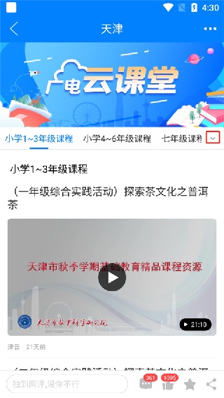 2. 点击欲进入的年级云课堂,其中包含诸多录播视频课。