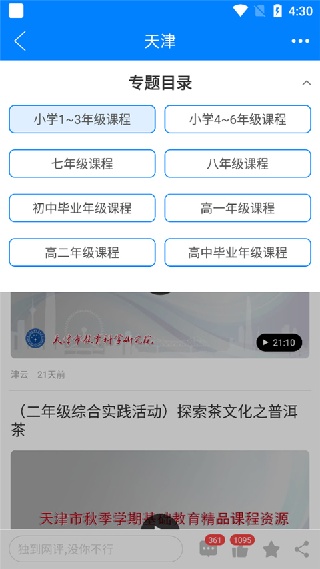 6. 内部设有小学初中高中所有年级的分类,点击右侧。