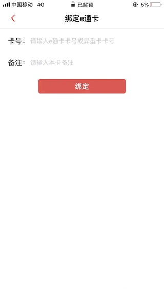 4. 查看e通卡的卡号(下图为我的e通卡卡号位置),输入卡号,备注可填可不填。绑定完成后,可看到绑定的卡号列表。