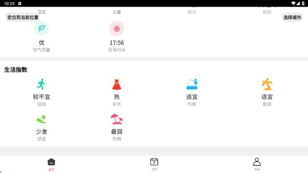 2、还有生活指数、天气指数等参考,数据应有尽有。