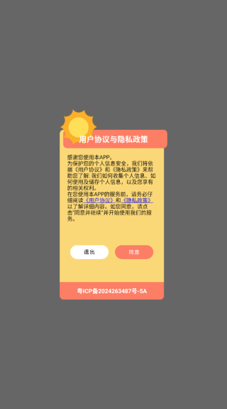 1、下载安装APP后打开软件,提示同意与否,点击同意进入;